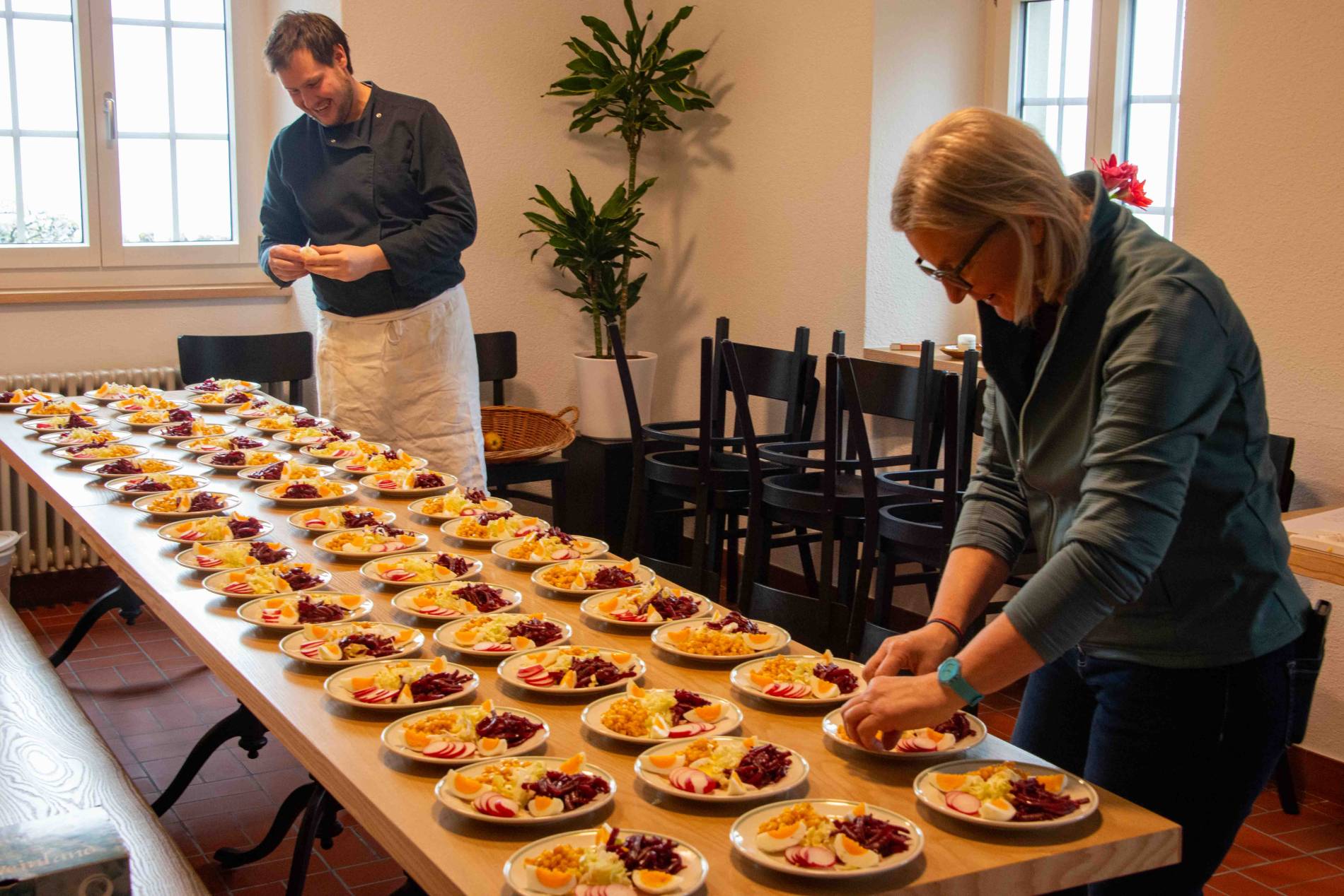 Das Behördenessen ist mehr als nur ein Neujahrsritual: Informell und auf Augenhöhe wird kreuz über quer diskutiert. Freiwillige Helferinnen hatten die Tische festlich geschmückt und unser Koch brillierte mit einem 4-Gang Menu. Hoffen wir, dass die gemütliche und friedliche Atmosphäre sich im kommenden Jahr auch auswirkt zu einer gedeihlichen Zusammenarbeit über die Amtsstuben hinweg.