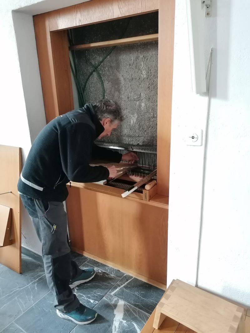 Zuerst wurden die Tasten und alle Pfeifen entfernt. Nach einer gründlichen Reinigung kommt alles wieder an den richtigen Platz. Zum Schluss werden alle Töne noch richtig gestimmt. Dafür kommt ein ferngesteuerter, elektrischer Organist zum Einsatz.