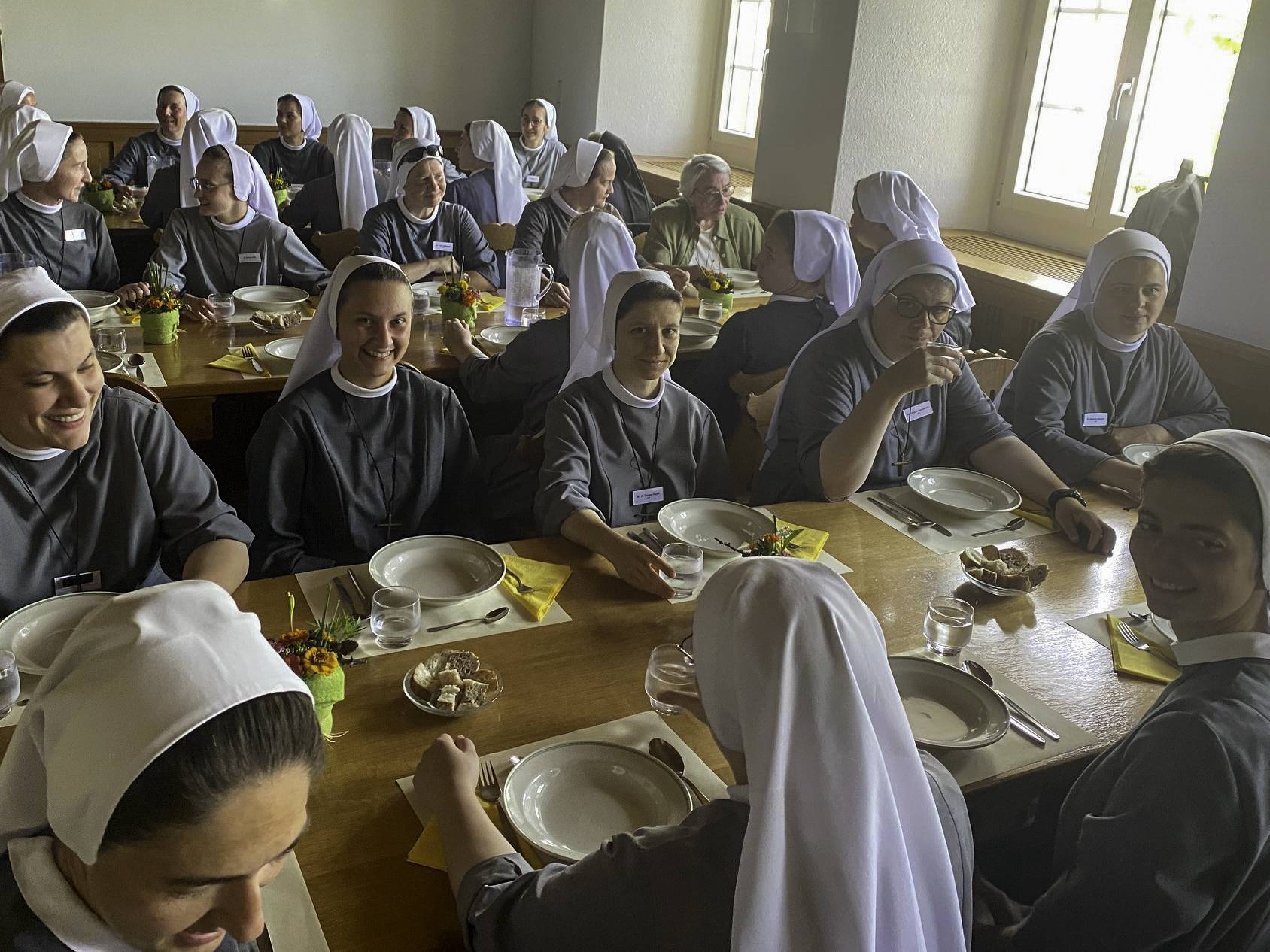 Der Juniorats Kurs wird in Ingenbohl durchgeführt, bevor die jungen Schwestern die feierlichen und ewigen Gelübde ablegen. Dabei waren Schwestern aus fünf europäischen Ländern: Deutschland, Kroatien, Slowakei, Tschechen und der Schweiz. Auf ihrem Tagesausflug folgen die Schwestern den Spuren ihrer Gründerin, der seligen Sr. Maria Theresia Scherrer. Die heutige Tagesreise führte die Schwestern über Galgenen, wo Maria Theresia als Primarlehrerin wirkte, nach Rapperswil zu den Kapuzinern. Hier konnten sie sich an Ihren Gründer, den Kapuziner Theodosius Florentini erinnern. Nach dem Mittagsgebet in der Klosterkirche und dem Mittagessen zusammen mit der Klosterfamilie im Refektorium, zogen die Schwestern weiter ins Frauenkloster Wurmsbach, wo seinerzeit Sr. Maria Theresia die feierlichen Gelübde abgelegt hatte. Wir begleiten die Schwestern mit Gebet und besten Wünschen auf ihrem Weg in die Zukunft.