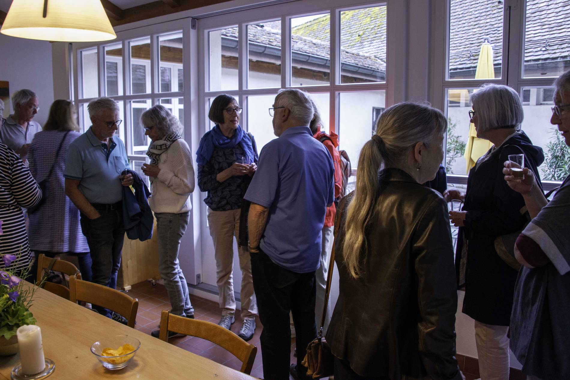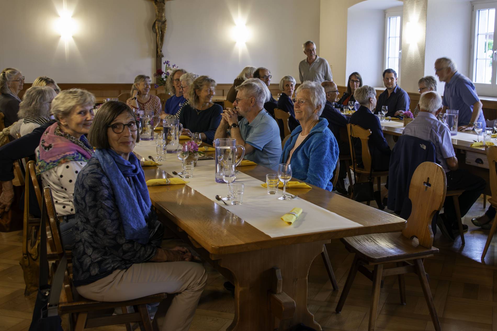 Ihnen allen dankten die Brüder und die beiden Frauen der Lebensgemeinschaft mit einer Einladung zu einem gemütlichen Abend mit Speise und Tranke. In Küche, am Grill und im Refektorium gingen sie selbst zu Werke, um den Helferinnen und Helfern den gebührenden Dank vorzubereiten. Es sei allerdings nicht verheimlicht, dass unser Profi-Koch Stephan, dem Nachtessen noch das letzte Tüpfelchen aufgesetzt hat. Über zwanzig Helferinnen und Helfer sind gekommen zur gemeinsamen Vesper im Gebetschor des Klosters, zum Apero an der Klosterpforte und zum anschliessenden Grillabend im Refektorium. Ein gemütlicher und gefreuter Abend für alle, in gegenseitiger Verbundenheit und Wertschätzung.